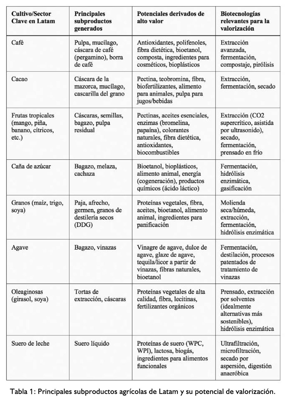 Latam, como potencia agrícola global, genera un volumen masivo y diverso de subproductos derivados de sus principales cultivos e industrias, como el café, cacao, frutas tropicales, granos, agave, y la acuicultura. Estos materiales, que tradicionalmente representan un costo de gestión o una fuente de contaminación, albergan un potencial económico y nutricional enorme. Por ejemplo, se estima que un 33% de los alimentos producidos a nivel global se desperdicia y una porción significativa de esto ocurre en las etapas de producción y procesamiento, generando subproductos.