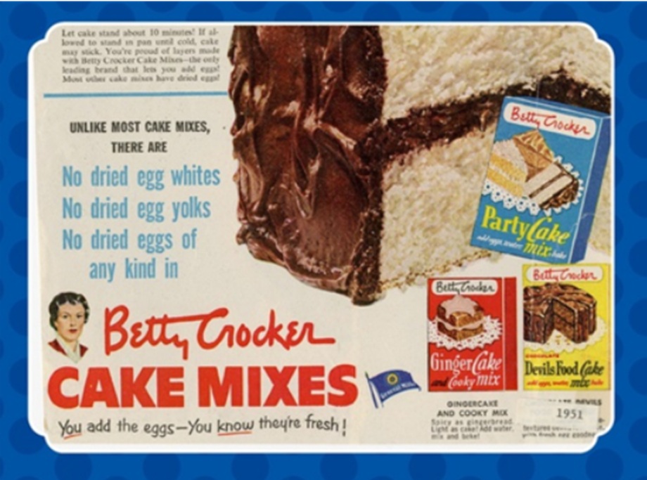 En 1949 lanzó la primera mezcla para pastel: Ginger Cake y en 1952 se lanzaron las mezclas para pastel de fiesta y pastel de chocolate. Durante las pruebas, los panaderos caseros preguntaron si podrían añadir algunos de sus propios ingredientes, como huevos frescos. Las mezclas se actualizaron y se lanzaron con instrucciones que indicaban el uso de huevos frescos.