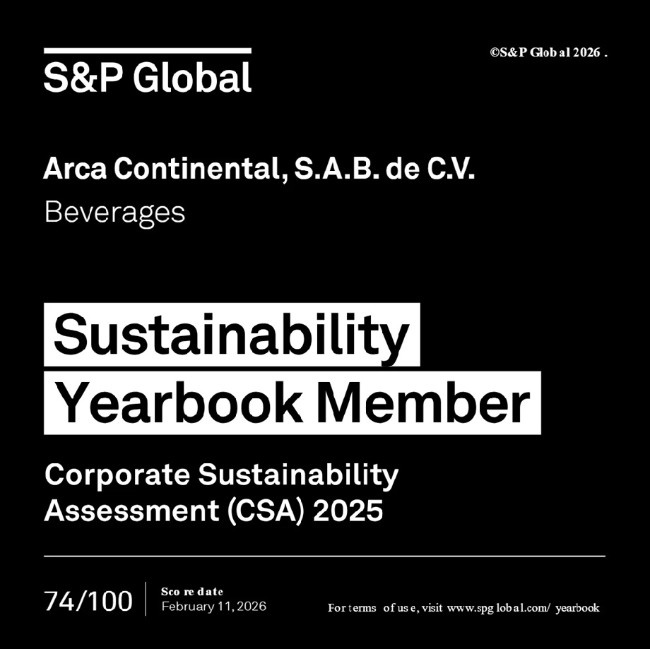 Comunicado. Arca Continental, uno de los embotelladores de Coca-Cola más importantes del mundo y que en 2026 cumple 100 años como el primer embotellador de Coca-Cola en México, anunció que fue reconocido, por cuarto año consecutivo, como Miembro del S&P Global Sustainability Yearbook, dentro de la industria de Bebidas, reafirmando su posicionamiento entre las empresas con mejores prácticas en sostenibilidad a nivel global.