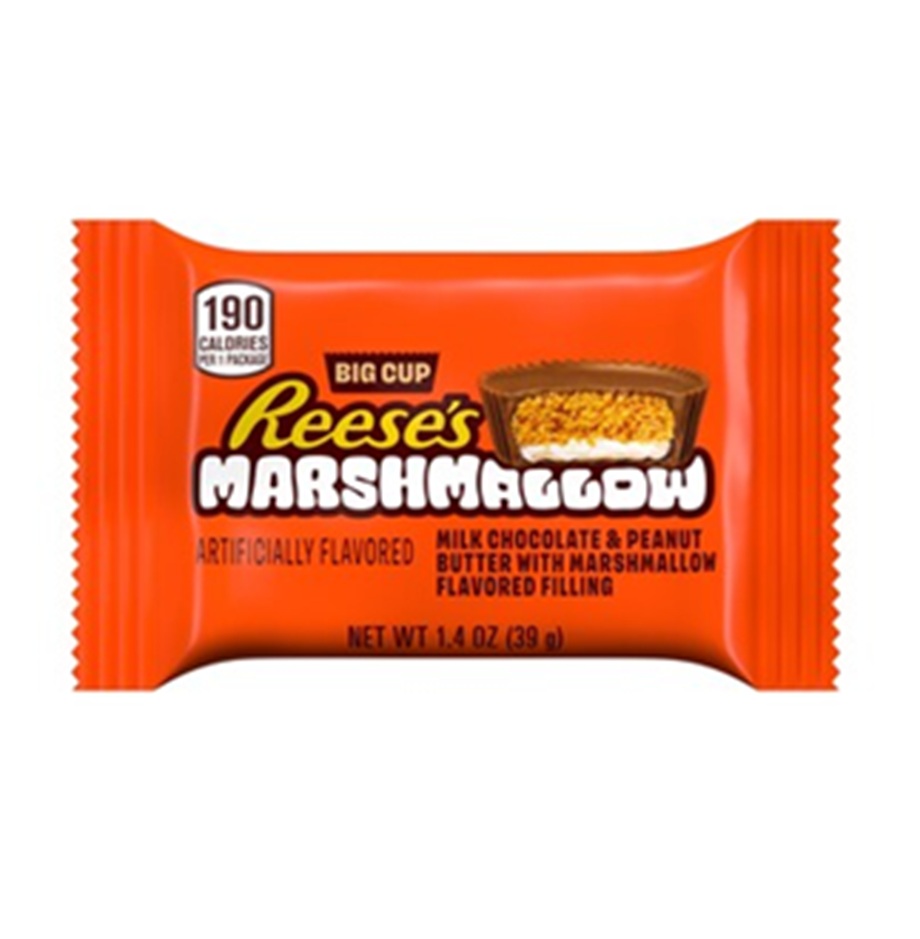 La nueva Reese's Marshmallow Cup contiene suave chocolate con leche, la clásica mantequilla de cacahuete de Reese's y una capa de relleno con sabor a malvavisco.