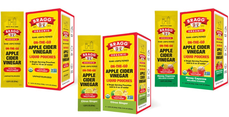 Las bolsitas de vinagre de manzana Bragg On-the-Go vienen en tres sabores y ofrecen una dosis perfecta de bienestar en un práctico envase individual: