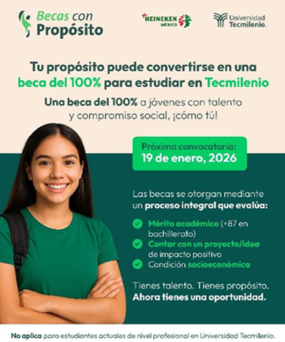 Comunicado. HEINEKEN México y la Universidad Tecmilenio anuncian el inicio de la convocatoria 2026 de Becas con Propósito, una alianza estratégica que reafirma la responsabilidad de ambas instituciones con la inversión en el futuro de México a través de la educación de alto impacto social. El programa, que ha otorgado más de 440 becas al cierre de 2024, es una iniciativa fundamental para la acción social, fortaleciendo el objetivo de HEINEKEN México por impulsar el progreso del país para Brindar un Mundo Mejor.